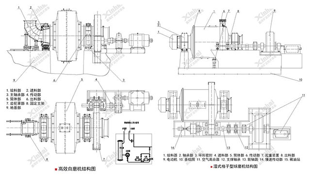 上半自磨机可能省掉一台破碎机,但日常运行成本偏高。球磨机单位能耗较低,备件更换也更方便、便宜。